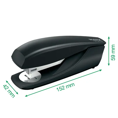 SEO EN: Leitz NeXXt Recycle stapler, CO2 neutral stapler, recycled plastic stapler, eco stapler, 94% recycled materials, 100% recyclable, Direct Impact Technology, P3 24/6, P3 26/6, top loading, open and closed stapling, tacking, eco office supplies, sustainable stapler, black stapler