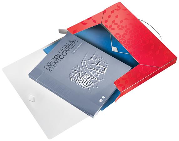 Nepriehľadný polypropylénový box na prenos objemnejších spisov, cenníkov, katalógov a pod. do formátu A4. V dizajne rady WOW v žiarivých farbách. Praktické zatváranie gumičkou na kovový krúžok. Rozmery (v × h × š) 330 × 250 × 30 mm. Väčšie balenie 5 ks. Farba červená.