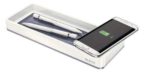Organizér na stôl s bezdrôtovým nabíjaním Leitz WOW – bielo-farebný, Qi indukčné nabíjanie