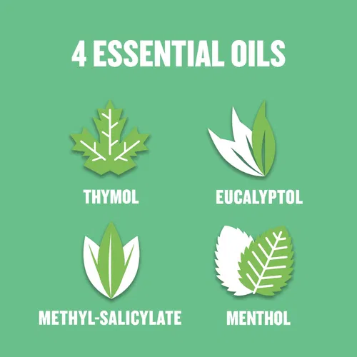 Aqua, Alcohol, Sorbitol, Poloxamer 407, Benzoic acid, Sodium saccharin, Eucalyptol, Methyl salicylate, Aroma, Thymol, Menthol, Sodium benzoate, CI 47005, CI 42053.