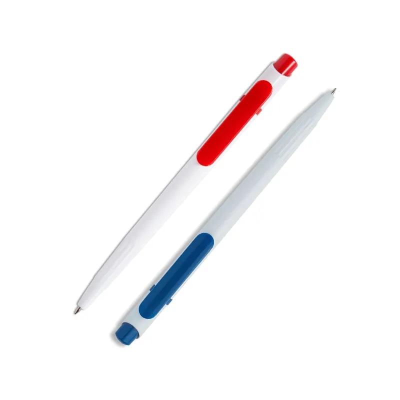 | Guličkové perá s bielym telom. Dekoračný krúžok a klip v rôznych farbách bez možnosti výberu konkrétnej farby. Vymeniteľná náplň 4406. |