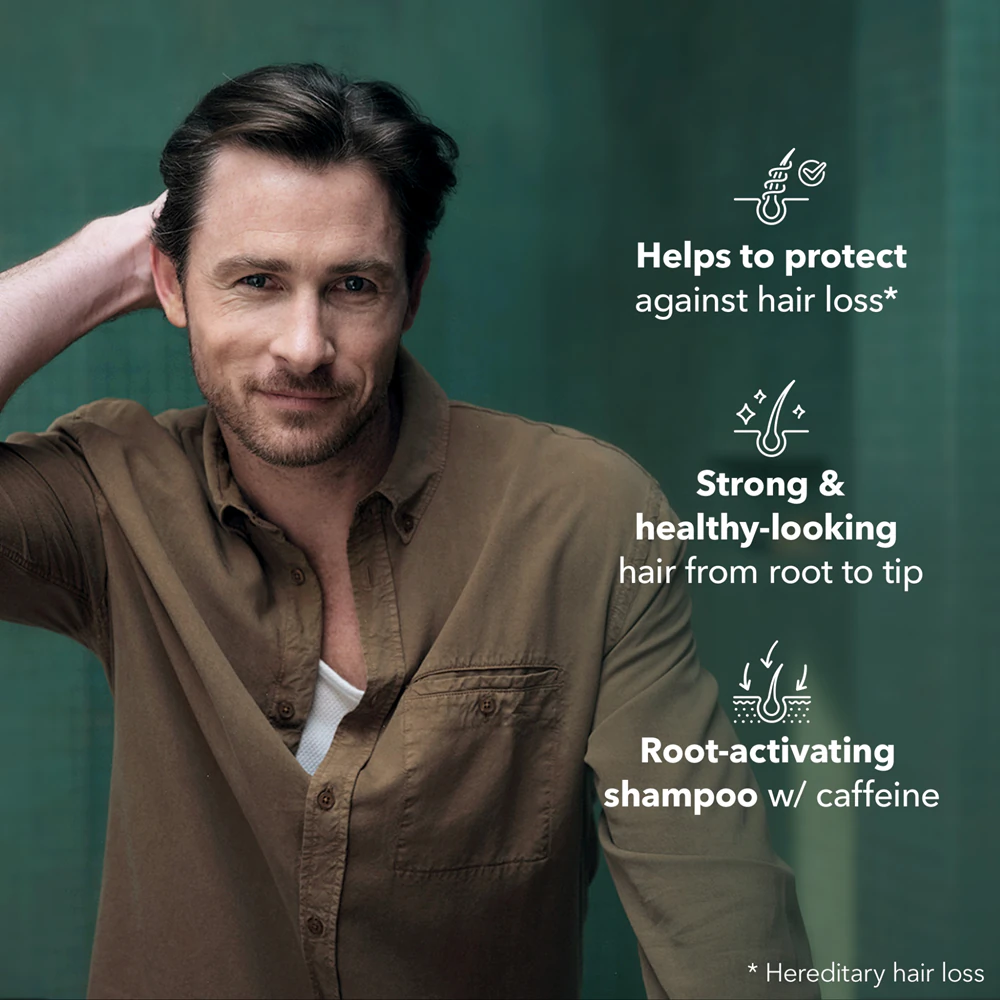 Schwarzkopf Schauma Hair Booster shampoo with caffeine for weak and thinning hair. Stimulates hair growth, strengthens roots and helps prevent hereditary hair loss. Vegan, dermatologically approved formula.