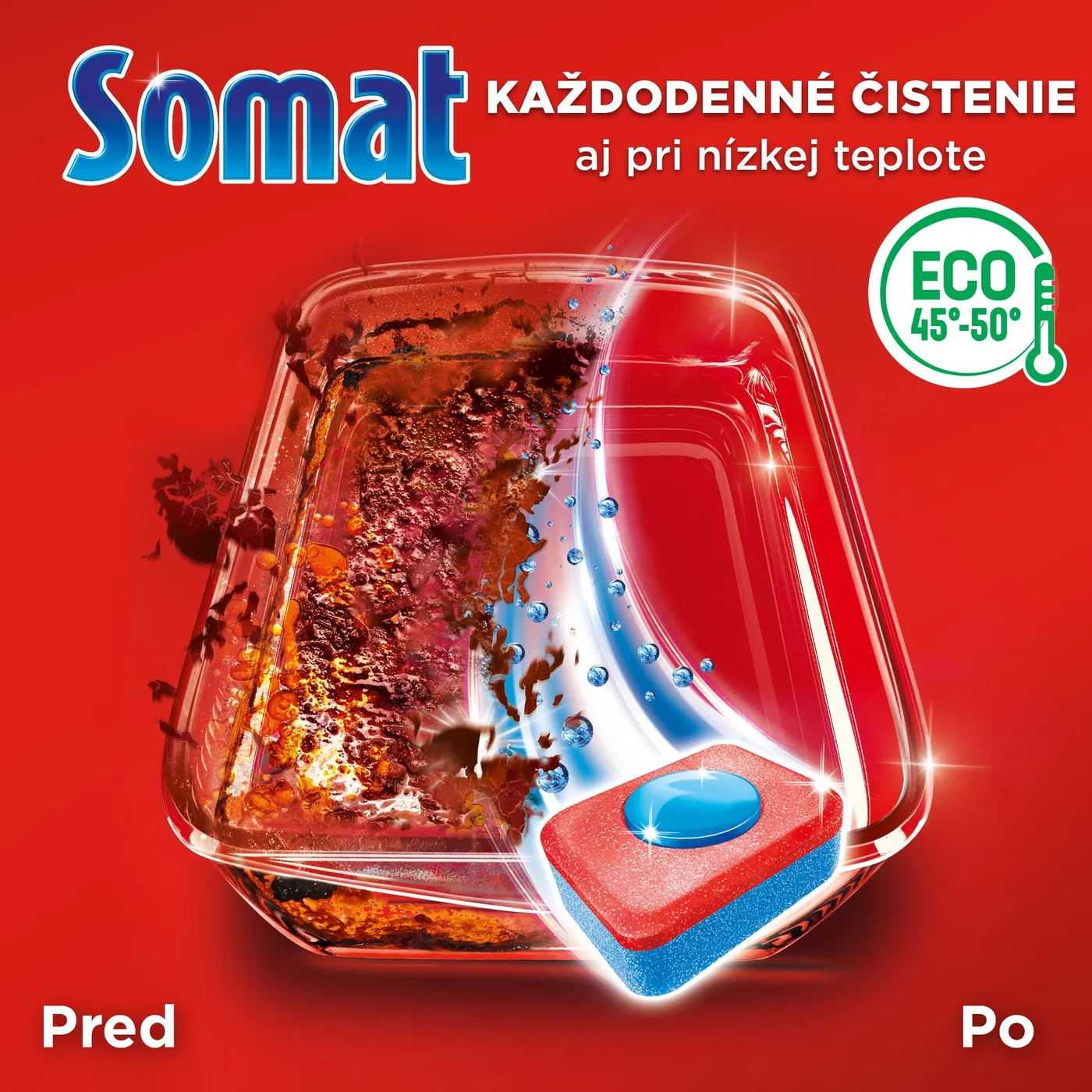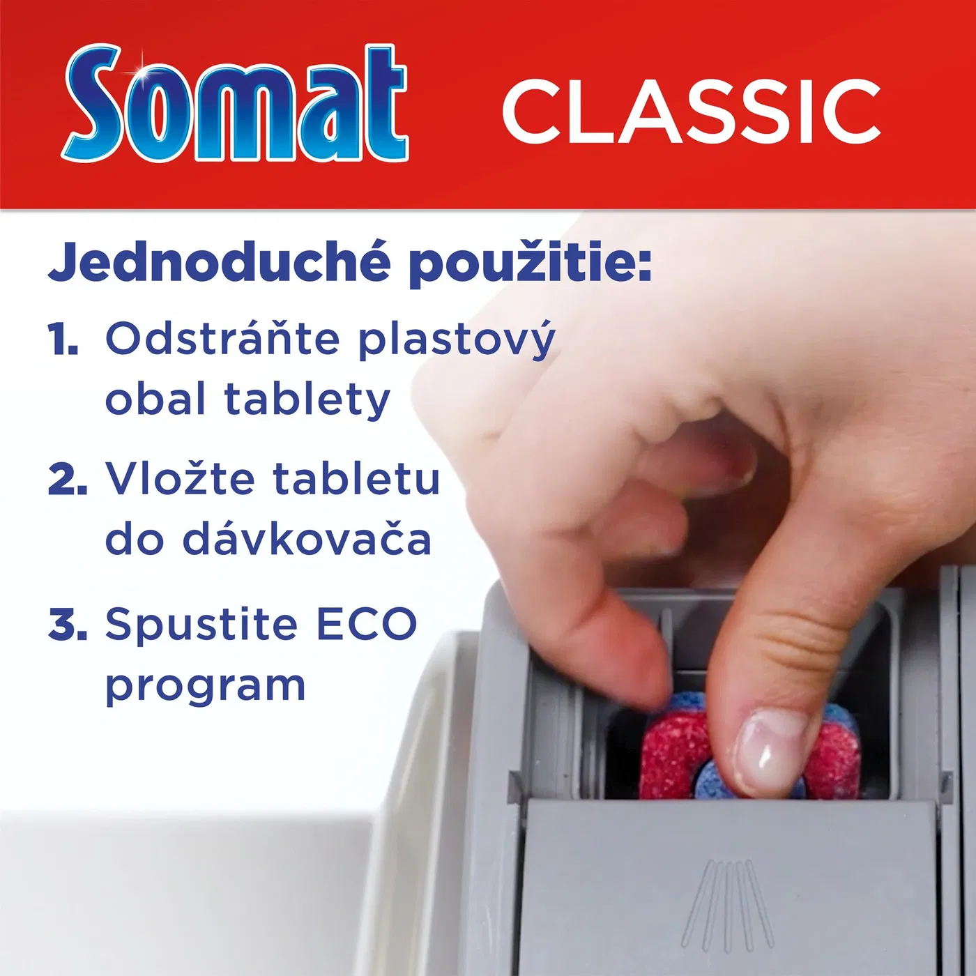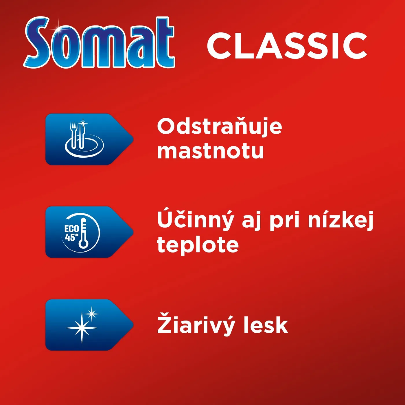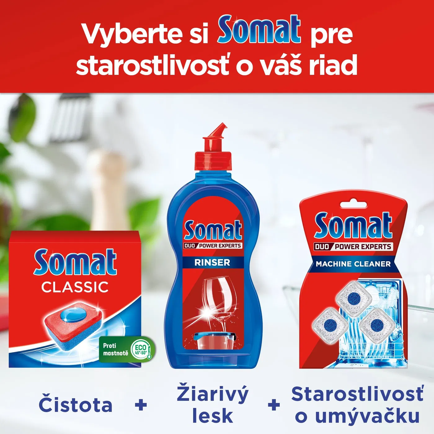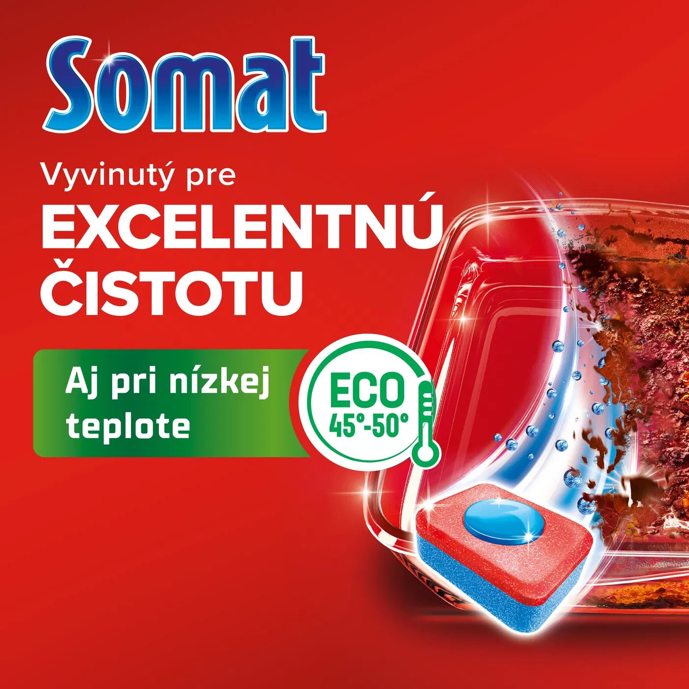 tablety do umývačky Somat Classic, Somat Power Lemon, tablety do umývačky s vôňou citróna, čistenie riadu v eco programe, žiarivo čistý riad bez škvŕn, odstránenie mastnoty a zvyškov jedla, tablety proti zápachu, Somat klasické tablety, Somat tablety na krátky cyklus, šetrné tablety do umývačky riadu