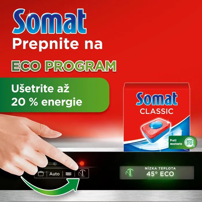 Pre dokonalé výsledky a úsporu energie používajte krátky alebo eco program s nízkou teplotou. Pri menej znečistenom riade zvoľte krátky cyklus, pri bežnom znečistení eco program. Pravidelne používajte Somat čistič umývačky na zachovanie čistoty a predĺženie životnosti zariadenia. Vyhnite sa intenzívnym alebo expresným programom, ktoré zvyšujú spotrebu vody a energie.