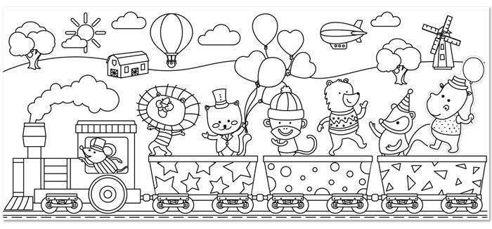 Samolepiace omaľovánky na rolke Stick'n – Zábavný vláčik, 31 × 355 cm