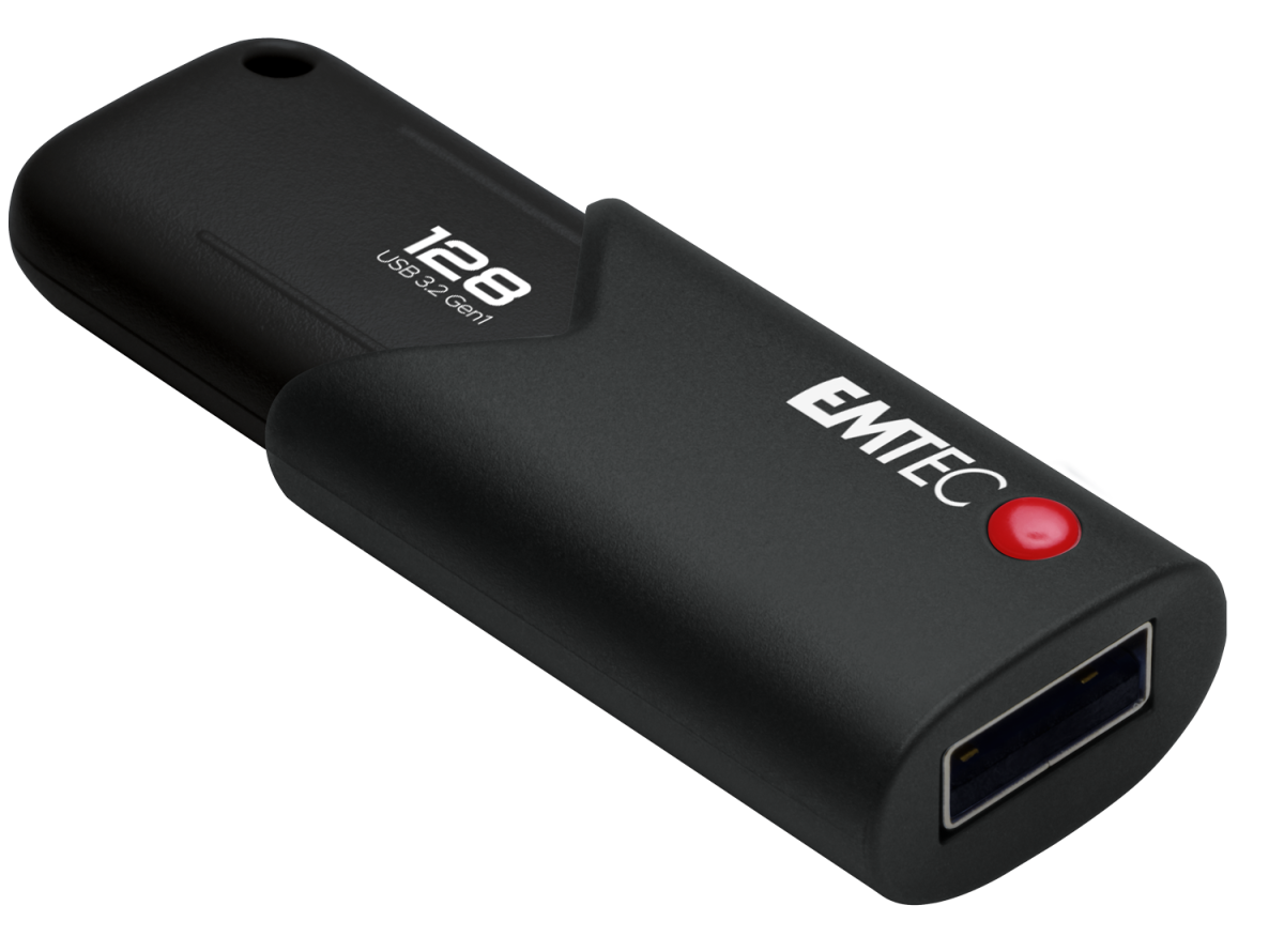 EMTEC B120 Click Secure je bezpečný a ekologický USB kľúč s mechanickým vysúvacím mechanizmom bez krytky. Vďaka softvéru EncryptUSB® s pokročilým 256-bitovým AES šifrovaním ponúka ochranu vašich dát pred neoprávneným prístupom. Jeho telo je vyrobené zo 100 % recyklovaného plastu a podporuje vysokorýchlostný prenos cez USB 3.2.